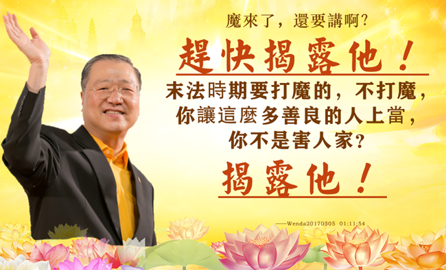 魔来了,还要讲啊?魔来了,赶快揭露他!末法时期要打魔的,不打魔,你让这么多善良的人上当,你不是害人家?揭露他!